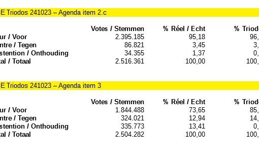 Toen de verrassing voorbij was, voelde ik vanzelfsprekend sterke ontevredenheid. Niet veel, maar daar stonden ook geen positieve geluiden tegenover. Net als Triodos met betrekking tot de uitslag van de stemming over toetreding tot Euronext, kunnen wij vaststellen dat een groot aantal aandeelhouders hun teleurstelling heeft uitgesproken.
